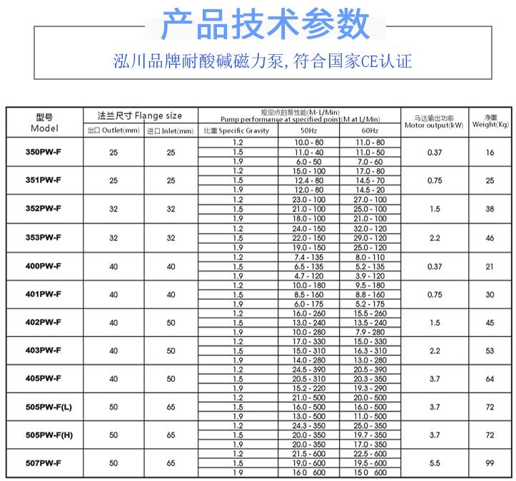 2、選擇合適的流量、揚程。對于塑料化工磁力泵的流量揚程,在采購時,都是技術人員確定好的,只需要告訴水泵廠家就好。需要注意的是,技術人員給出的流量揚程是實際使用值,還是需求參數(shù)全值,這個一定要和業(yè)務溝通好,以免選錯型號,到了現(xiàn)場不能使用。也可以根據(jù)廠家給出的產(chǎn)品說明書中的性能曲線圖進行選型,前提是真的懂技術。